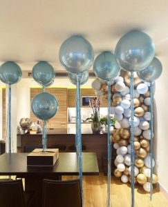 ترکیب این بادکنک با بادکنکهای آبـی، سبز و صدفی میتواند دکوراسیونی چشمنواز و خاص خلق کند.